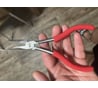 Ножнницы для правшей. Купил в 2013 году в дополнение к ножницам советского образца. Из-за толщины не очень удобно делать глубокие надрезы в жести. Лезвия со специальными зазубринами - рез получается не ровный, а фигурный - минизигзагообразный. Иногда использую для резки пластика.