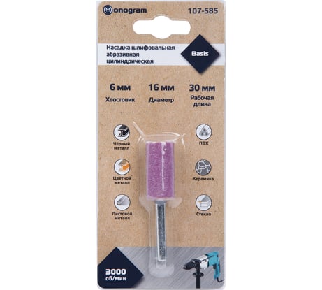 Отзыв Насадка абразивная цилиндрическая 16x30 мм MONOGRAM 107-585