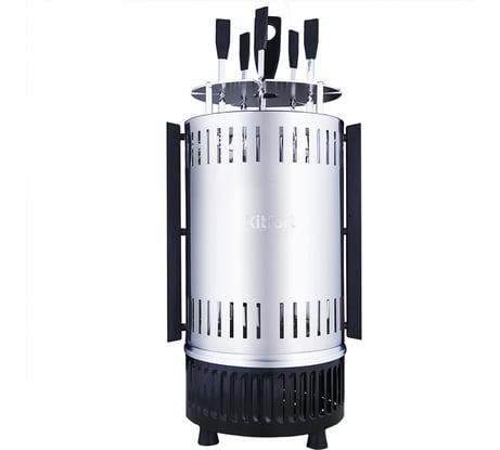 Ну, шампуров то всего 6 (что и указано в комплектации) плюс центральный шампур, который использовать так же, как и боковые (основные) шампуры невозможно. Центральный шампур "для иных удовольствий" - для курицы целиком, например. А если на него нанизать мясо, так же, как и на боковые шампуры, то оно не прожарится в какие-то разумные сроки. Просто потому, что этот центральный шампур находится от ТЭНа на значительно большем расстоянии, чем боковые шампуры. В описании сказано, что можно пожарить за один раз до 4 кг мяса. На шампурах это возможно ну если только теоретически, т.к. для этого надо, чтобы куски мяса были идеальной цилиндрической формы с радиусом не превышающем 25 мм. В противном случае мясо начинает задевать за ТЭН при вращении шампуров. А поскольку куски мяса всё-таки достаточно произвольной формы, то реально можно за один раз пожарить от 1 до 1,5 кг. Реальное время приготовления шашлыка - 45-50 мин.