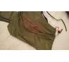 В комплекте оказались колышки (12 шт.), а в дополнение к петлям - люверсы. Материал (полиэстер) на ощупь не хлипкий, с пропиткой, которая чувствуется. Швы хорошо прошиты. Цвет зелено-защитный. По аналогичным свойствам тента для палатки могу сказать, что тент (купленный) выдержит ливень на протяжении ночи. Конечно, его свойства со временем будут ухудшаться, но его можно крепить под наклоном, чтобы вода стекала.