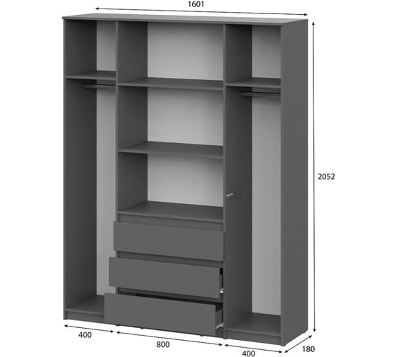 Шкаф распашной Арника ШК 5 800, Графит 00-00161560