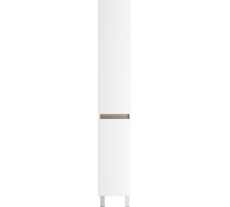 Приобрели в дополнение к тумбе из этой же серии. Пенал смотрится благородно и хорошо передает фактуру. Цвет приятный, без желтизны. На фасаде нет привычных ручек, но открытие с нажатия срабатывает сразу. Две дверцы и прочные вместительные полки: все банные и гигиенические принадлежности под рукой.