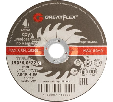 Отзыв Диск шлифовальный по металлу Т27 150x6.0x22.2 мм Greatflex 50-864