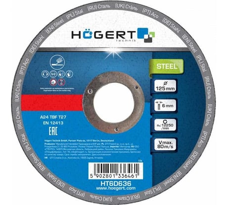 Отзыв Диск шлифовальный по металлу 125x6.0x22 мм, 10 шт HOEGERT TECHNIK HT6D636
