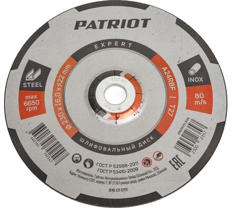 Отзыв Диск абразивный шлифовальный EXPERT 230х6х22.23 мм, по металлу Patriot 816010111
