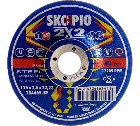 Отзыв Круг шлифовально-отрезной STANDART (125х2.5х22.23 мм; 20A46S-BF; F27-42) SKORPIO 703150