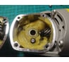 Почти все особенности и "недостатки" связаны с ее мобильностью. Две кнопки на включение и без фиксации, прожорливая(5Ач батарейку высаживает спокойно). Круги на 115 менее распространены чем 125 (отрезной найти еще легко, а вот например фибровый - уже нет). 7500 оборотов вполне хватает для комфортной резки металла. Домашний вспомогательный инструмент без изысков, сравниваю с сетевой AEG(там кожух быстросъемный удобнее сделан, плавный пуск и гайка безключевая). Вот фото редуктора. Смазка с завода в необходимом количестве.