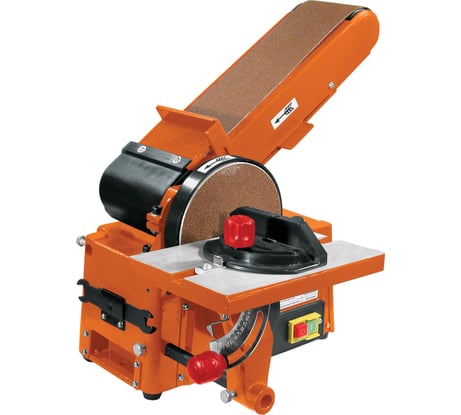 Приехал не синий, как на картинке, а обновленный оранжевый. В невскрытой заводской упаковке. С фильдеперсовой тумбой с блатной защелкой. В тумбе конструктивно не предусмотрено дно, поэтому действует так: нажимаете блатную защелку, открываете дверцу, кладете что-нибудь внутрь тумбы на пол, закрываете дверцу :) Станок чугунный, массивный, вибрации при работе нет. Мощность двигателя для работ по дереву достаточна. Покраска качественная, нигде ни пропусков, ни брака. Наклейка с красивым названием станка и серийным номером сразу же сама собой отклеивается и попадает в мусорный мешок. Нижняя защита ленточного шлифовального узла встала как родная (только непонятно, что там снизу нужно защищать?), а вот передняя защита ленточного шлифовального узла совершенно не подходит по размеру к станине, хотя была бы не лишней в плане безопасности - полетела в мусорный мешок. Упор ленточного узла - стальной, довольно крепкий, можно настроить угол наклона. Тумба жесткая и устойчивая, все 4 резиновые ножки регулируются. В комплекте одна шлифовальная лента и один круг - зернистостью 80. В инструкции в разделе технических характеристик указана длина ленты - 1200 мм. Такой длины нигде не нашел. Заказал ленту Кратон здесь же, длиной 1220 мм зернистостью 120. Странно, но по длине подошла как родная, даже ничего настраивать не пришлось. Общее впечатление скорее положительное, своих денег (31 тыр.) стоит. На фото в процессе сборки.