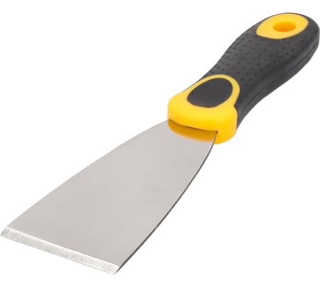 Хороший шпатель, удобная ручка. Это жёсткий шпатель скорее для сдирания и скобления или размешивания. Для шпатлевания он жесткий. Но мне такой и нужен был.