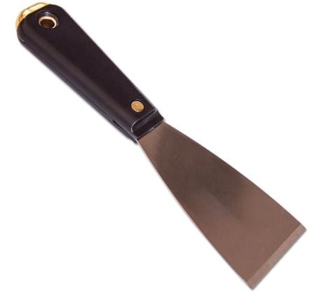 Мошный шпатель с толстым полотном, заходящим в ручку и через нее до бойка. Хорошо сбивать, счищать разные поверхности. Хорошо им замешивать вручную тяжелые смеси, не гнется.