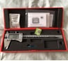 Хороший прибор, проверил на щупах, сверлах - в пределах заявленной погрешности. Движение рамки идеальное. Обработка металла отличная. Стопорный винт не выкручивается до конца. Пришел законсервированный. При сведении губок всегда ноль. Люфтов нет. В комплекте две батарейки, остальное на фото.