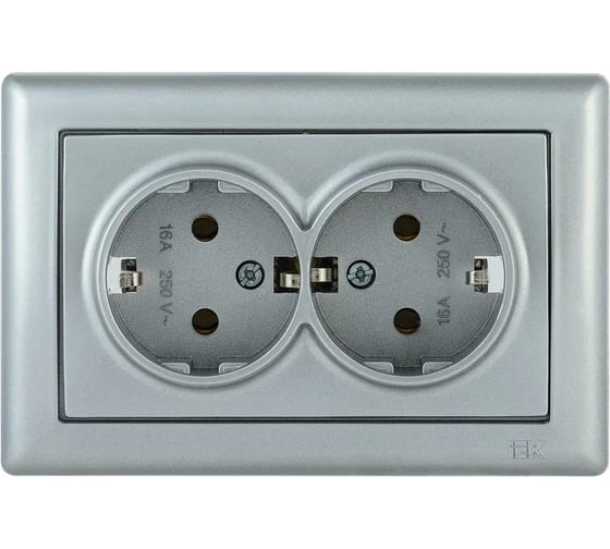 Розетка IEK РС14-1-0-Б с з/к с з/ш 16А BOLERO серебряный ERB14-K23-16