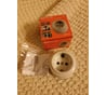 Красивая, крышка керамика, сама розетка пластиковая. Крепление через отверстия диаметром 4,4, длиной 15,2. В комплекте два самореза 3,5х40 с тупым концом (под дюбель) и два дюбеля.