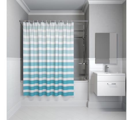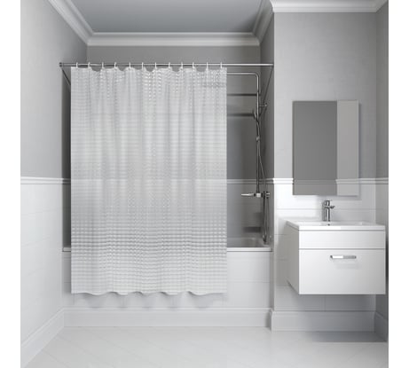 Штора для интерьера ванной в графичном стиле. Соответствует описанию и фото.