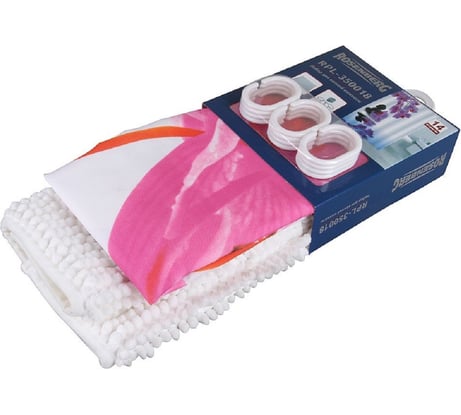 Набор брался для ротации в ванной комнате. Оказался вполне функциональным. Штора сделана из полиэстера. Приятно выглядит и ощущается. Строчки ровные. Отверстия под петли прошиты все и аккуратно. Влагу не пропускает. Размер на фоне альтернатив из Ikea чуть меньше. Коврик хотя и компактный, но приятный по ощущениям. Обратная сторона немного прорезинена, что ли. Почти не скользит на полу. Рекомендую.