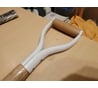 Эргономичная пластиковая ручка с шагренью. Глянцевый черенок с логотипом. Тело лопаты имеет следы механообработки что то типа ковки или намеренного нанесения для маскировки царапин. Покрыто с новья лаком, который в прочем несколько облупился при транспортировке.между металлической и фибровой частью установлена защитная пластиковая закраина не дающая соскальзывать руке. Конец фибровой части заглушен деревянным элементом визуально обработанным каким то составом. все части удерживаются 2мя качественно расклёпаными клёпками. Работать приятно.В руках не скользит. Руки не мёрзнут. Сбивает великолепно лёд. Есть опасение за прочность на излом, но она всё же предназначена для земляных работ. Умещается по прямой в багажник и на заднеее сиденье сандеро.