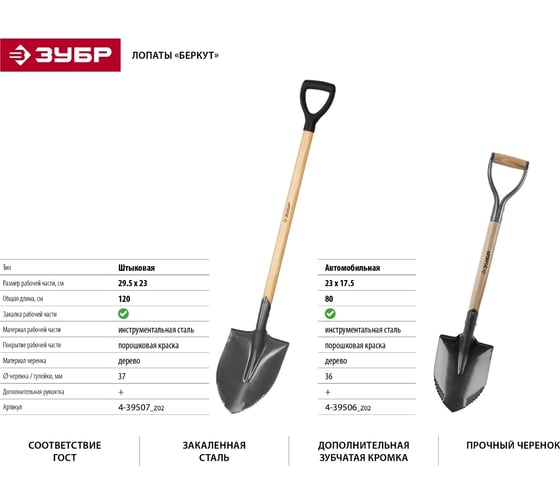 Штыковая лопата ЗУБР Профи-7 тип ЛСГ 275x205x1200 мм 39557