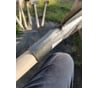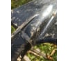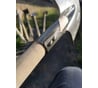 Погнулась выше ребер жесткости и ниде упора для ног. Лезвие тупое, примерно, в 1 мм.