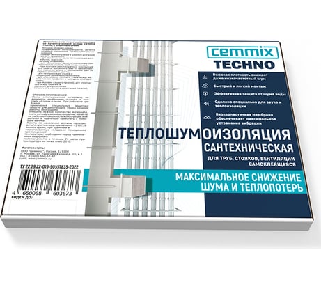 Использовал для оклеивания стальной ванны с толщиной металла 3мм. Для этих целей подходит: тепло и шумоизоляция достаточны. Для шумоизоляции стояка, думаю, будет тонковата. Заявленная толщина листов - 6мм, но мой штангенциркуль тяготит больше к 5мм.Слой бутил-каучука 2мм, остальное вспененный полиэтилен, который даст теплоизоляцию, но не даст достаточного для стояка шумопоглощения и виброгашения.