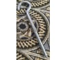 Белый цинк, не ржавеет. Диаметр 6 мм дает достаточно высокую прочность. Недорогой. С помощью этого шурупа с полукольцом можно, например, прикрепить люстру к потолку. К деревянным конструкциям крепить можно просверлив отверстие, а к бетонным - просверлив отверстие под пластиковый дюбель и заворачивать шуруп с полукольцом уже в забитый дюбель. Красота!