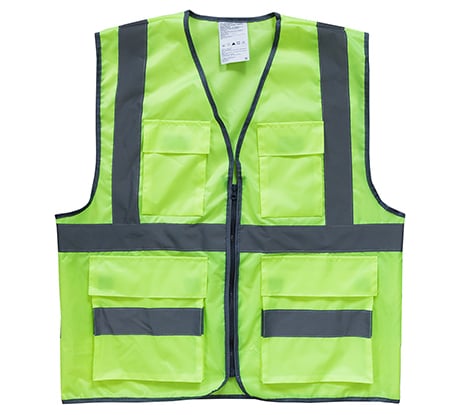 удивительно неплохой жилет, неодноразовый,пойдёт для постоянной носки. ткань — тонкий oxford (плащёвка с пропиткой) — шуршит, на морозе хрустит, водоветростойкая, довольно плотная. цвет лимонный, яркий, заявлен флюор, но пока не уверен. прошито на вид неплохо, по краю чёрная бейка, светоотражайка широкая, толстая, яркая. липучка одна и таки слабая. впритык налезает поверх нетолстой куртки 50-го размера (если улучшить застёжку — можно активно двигаться и работать).