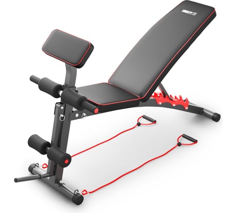 Скамья не соответствует картинке на сайте. Нет красной окантовки. Нет тяговых тросов.