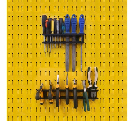 Отличный комплект металлических держателей. Крепили напрямую к стене разогнув крепежные язычки без особого труда . Плоскогубцы и отвертки отлично встали на свои места не болтаются, планирую еще вставить напильники. Качественный метал который не деформируется. Для организации пространства отличный комплект . Рекомендую к покупке