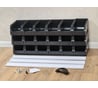 Удобная планка для установки небольших ящиков под метизы и прочую мелочевку, которые покупал здесь же. Покупал две штуки которые потом резал на три части и прикрутил к стене. В итоге повесил над верстаком 18 небольших ящиков