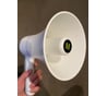 Очень громкий и лёгкий рупор, брал для волонтёрских акций — голос слышен на большие расстояния. Работает от батареек или аккумулятора, есть сирена и регулятор громкости. Принцип: электродинамическая секция + рупор для усиления звука.