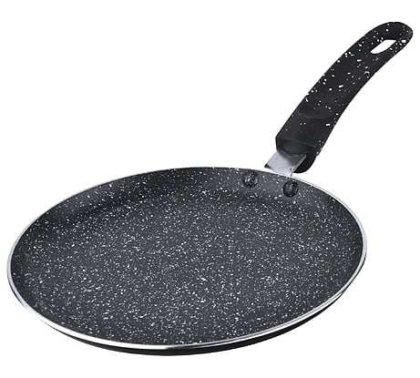 Великолепная сковорода за свою цену! Обязательно хорошо промаслить и ухаживать: картошка восхитительная, блинчики отменные. Сделано достаточно удобно - для блинов лучше заказать вторую сковороду - но на стеклянной плите надо осторожно двигать.