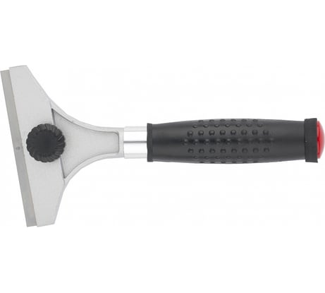 Простой , рабочий скребок. Самая простая конструкция. Потерять, сломать не жалко. Тонкая , гладкая трубка на использована для рукояти , просто напрессована на держатель лезвия. Резиновую рукоятку лучше посадить на клей- приклеить к трубке. Материал держателя лезвия - легкий, что -то типа силумина. Но для такого скребка достаточная прочность. Лезвия можно не покупать специальные- прекрасно подходят от канц. ножа шириной 18 мм. Лучше использовать более толстые. На фото всё показано. Составные части, размеры, трубка в ручке, как торчит пластик у зажимного винта- его лучше заменить на другой под отвертку или шестигранник и что бы максимально не торчал - место для головки винта там есть. Периодически покупаю такие скребки для ремонтов- где обои отодрать , где стены поскрести ... стоят не дорого - но хорошо пригождаются.