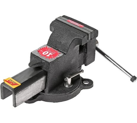 Шаг винта велик, сам винт врезается опорной частью в подвижную губку, тонкий вороток и короткий. Проблема винт гайка решается переделкой этой пары. Поворотное основание чугунное, тонкое. При ударных нагрузках раскалывается моментально !