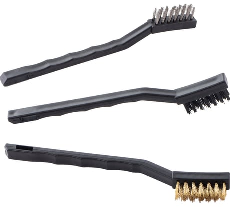 Пластиковая щетка рассыпалась после 2 минут работы, латунная и металлическая пока держатся.