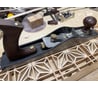 Полный нонейм без опозновательных знаков. Кроме ручек поюсов не нашел. Подошва с прогибом по центру - примерно 0,8мм. Железко и стружколом все в заусенцах и зазубринах. Железко само даже подполировано, но имеет глубокие борозды фрезеровки и, судя по заксенцам 3-4мм, которые легко гнутся, но не ломаютя, оно из чистой сыромятины. Прижим из латуни - красиво, но из-за винта его неудобно выставлять. В деталях сделан очень кондово(все на фото). Одним словом, помпезный такой дешман по цене нормального рубанка.