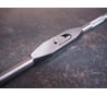 После того, как у меня сломалась пара китайских метчикодержателей из силумина (один развалился надвое, у второго вытащило резьбу) решил взять что-то из стали. Выбор был между фрезерованным и порошковым. Взял этот. В целом неплохой, но дороговат. Приходит в простой коробочке с плотным пакетом. Сам инструмент промаслен. Следов ржавчины не имел.
