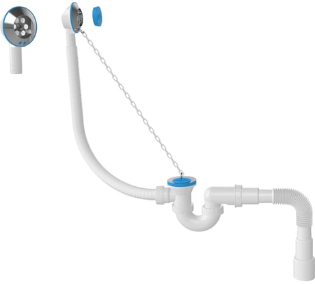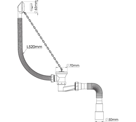 Отзыв Сифон для ванны Nova низкий h=120мм,выпуск 70мм, с пластмассовой цепочкой, выход гибкая труба 1 1/2- ø40/50 1521