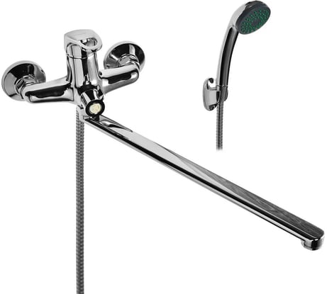 Длинный гусак, что позволяет использовать один смеситель на ванну и раковину. От частых поворотов туда-сюда не начал течь. При сборке я предварительно промазал соединение силиконовой смазкой. И накипи не будет в дальнейшем и подвижность на максимум.