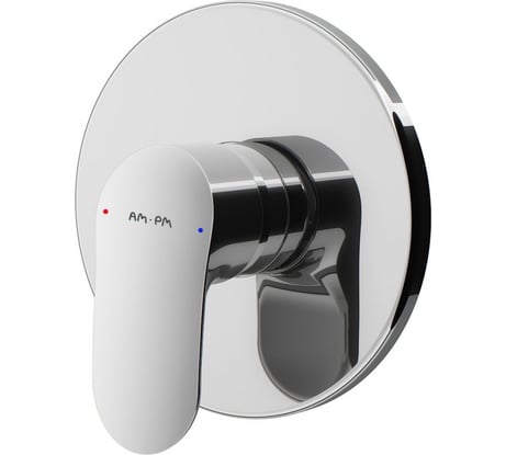 Смеситель для ванны и душа взяли AM.PM. Модель встраиваемая, покрытие – хром, смотрится хорошо. Смеситель однорычажный, в управлении прост. Корпус из латуни, прочный. Во внутренние части вода не попадает, так что ничего не испортится от влаги. Рычаг удачной формы, ложится по ладони. Управлять температурой и напором удобно.