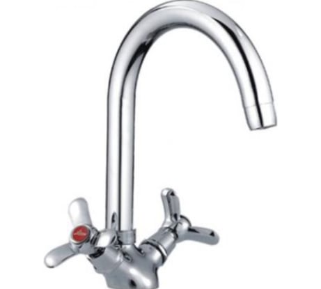 Не высокий и не низкий, гусак поворачивается, барашки полу оборотные, очень удобно, подводка достаточно длинная (60 см), в комплекте, не надо докупать.