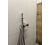 Можно регулировать напор, выглядит стильно, есть крючок для полотенца