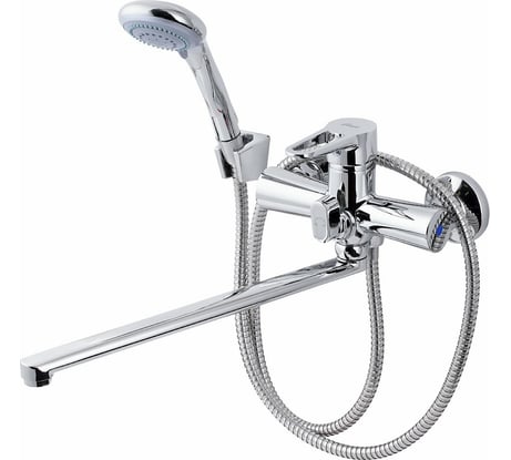 Кран бюджетный. Легкое переключение рычажком между изливом и душевой лейкой. Хорошая комплектация.