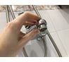 Все таки не латунный элемент крепления душа - на предидущем таком же смесителе начал разрушаться с мест царапин на хромированном покрытии, появившихся в процессе эксплуатации. Резинки с сетками, которые ставятся в гайки, накручиваемые на эксцентрики пришлось заменить на другие, большие по диаметру на 1мм.