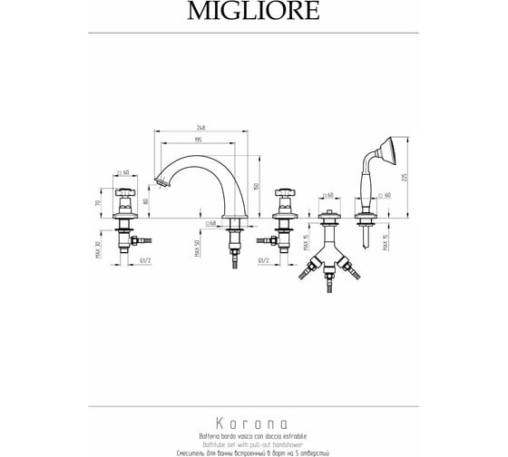 Смеситель на борт ванны Migliore REVIVAL на 5 отв., хром 19495