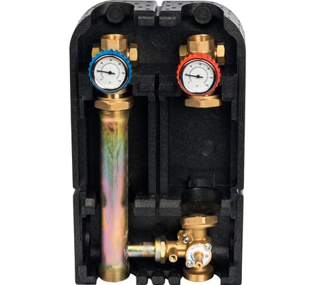 Удобный и простой в монтаже. Хорошее качество металла и резьб. Все уплотнения на резиновых прокладках. Эксцентрик удобен при монтаже, можно подальше к стене отставить насос, выровнять по осям коллектора. Эксцентрик не течёт, хотя довольно легко поворачивается. Градусник нестандартный, интересный, показания проявляются на шкале в зависимости от величины температуры.