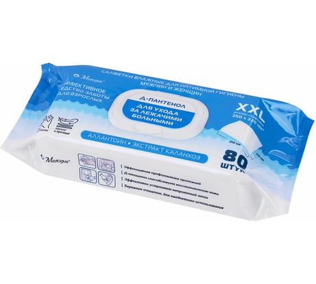 Очень удобные салфетки, хорошо увлажнены, не раздражают кожу. Отлично подходят для ухода за лежачими больными, в составе д-пантенол и экстракт каланхоэ, что заметно облегчает уход.