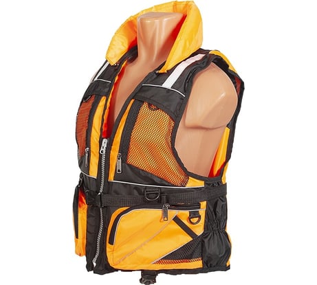 Отличный спасжилет. На меня высокого и стройного размер L-XL сел хорошо, как на осеннюю одежду, так и просто на футболку со спортивными штанами - он растягивается по бокам, и есть возможность отрегулировать фастексами в поясе и под грудью. Подгонка интуитивно понятная. Женщинам аналогичной комплекции тоже, мне кажется, должен подойти - в груди с запасом. Короткий, мне до пупа. Для рыбаков, может, и не очень, а для активной байдарочный гребли самое то. Воротник небольшой и отстёгивается (молния). Движениям головы не мешает от слова совсем. Паховые ремни - просто две регулируемые лямки с фастексами, застёгивающимися спереди. Есть сетка на молнии на спине, куда их можно убрать. Два удобных кармана по бокам, довольно больших, но не чересчур, плюс две сетки на груди, плюс внутренний, всё на молниях. Пластиковые полукольца для крепления мелочи снаружи. Сетки внутри понизу, чтоб просыхалось быстрее. Материал выглядит надёжно, но при этом вроде нежёсткий. Сертификация ГОСТ Р 58108-2019, внутри этикетка и принт (см. фото), чтоб ГИМС немного расслабился.
