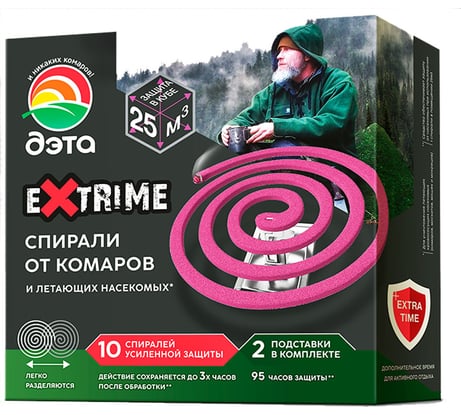 Отзыв Спираль от комаров-эффект ДЭТА EXTRIME средство инсектицидное, 10 шт., 2 подставки 66700919