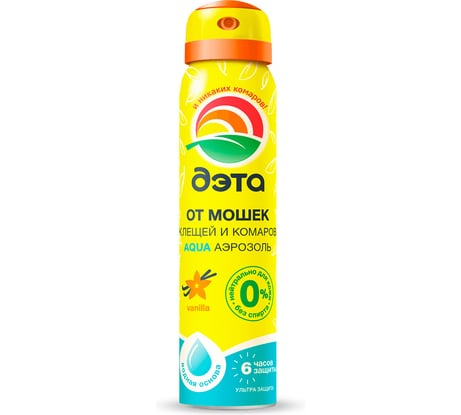 Отзыв Аэрозоль от мошек, клещей и комаров ДЭТА АКВА AQUA 100 мл 4602666705709