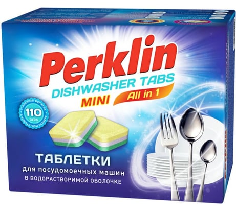Отзыв Таблетки для посудомоечных машин Perklin MINI TABS 110шт ALL in 1, растворимая оболочка 609647
