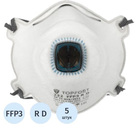 Отзыв Полумаска фильтрующая TOPFORT 232 с кл FFP3 до 50ПДК 5шт/уп 1805872